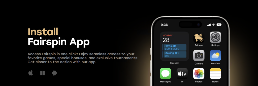 Svenska spelare är mobila, och det är vi också. Istället för att tvinga dig att ladda ner tunga filer har vi utvecklat en Fairspin app baserad på PWA-teknik (Progressive Web App).
