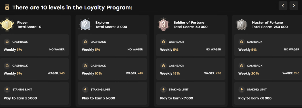 Utöver cashback får VIP-medlemmar tillgång till personliga managers, högre staking-gränser och exklusiva inbjudningar till turneringar.